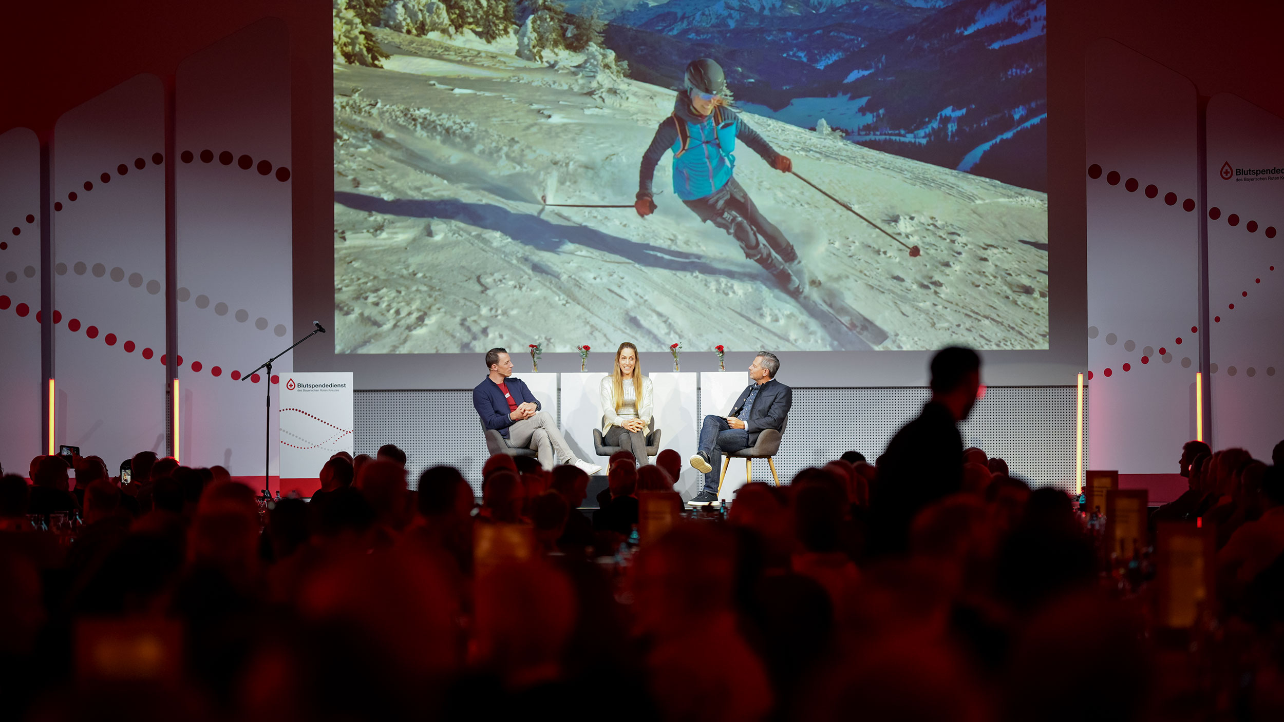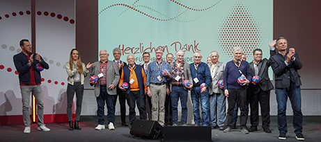 Empfangen wurden die vielfachen Lebensretterinnen und Lebensretter neben den Veranstaltern des BSD von BR-Moderator Michael Sporer, der durch den Abend führte und mit Gela Allmann sowie Handball-Legende Dominik Klein zwei namhafte Blutspende-Botschafter des BSD auf der Bühne begrüßte.